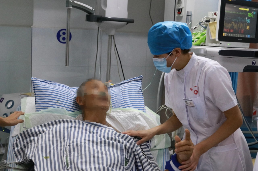 第10天,患者已能下床活动,顺利转出ICU病房。