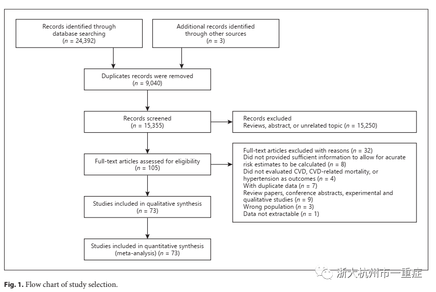 经过初步搜索,总共发现了24,395条独特的引文。其中,24,290人在筛选标题和摘要后被排除,主要是因为它们是重复、评论或与我们的研究无关(图1)。然后,对105篇文章的全文进行了回顾,共有73篇研究被认为是合格的,并被纳入了这项Meta分析。