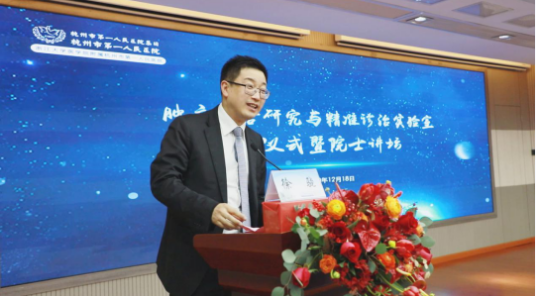 肿瘤研究,重在融合,旨在精准。12月18日下午,肿瘤融合研究与精准诊治实验室(以下简称“实验室”)启用仪式暨院士讲坛在浙江大学医学院附属成人抖音 学术报告厅隆重举行。该实验室由市一医院院长徐骁教授领衔,旨在打造多学科交叉融合的肿瘤精准诊疗一体化研究中心。中国工程院院士、中华医学会副会长、中国医师协会副会长郑树森院士担任实验室学术委员会名誉主任,中国工程院院士、国家肝癌科学中心主任、上海东方肝胆外科医院肿瘤临床医学中心主任王红阳担任实验室学术委员会主任,中国工程院院士、山东省第一医科大学名誉校长、山东省肿瘤医院院长于金明担任实验室学术委员会副主任。浙江大学副校长、医学院党委书记周天华,成人抖音 卫生健康委员会党委书记、主任孙雍容,浙江省科学技术厅基础研究与条件建设处处长夏昶祺等出席。启动仪式由市一医院党委书记黄进宇教授主持,“院士讲坛”由院长徐骁教授主持。