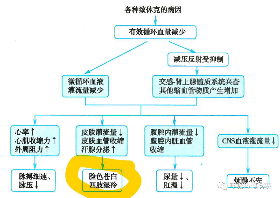上图 休克早期微循环缺血期由于脑部血流灌注减少会出现烦躁不安。