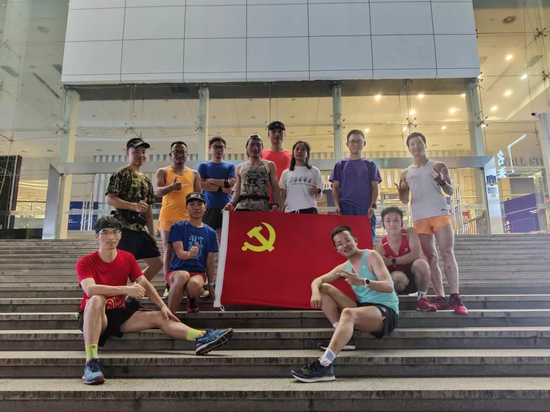 晚上7点15分,在经过短暂的热身活动后,大家一字排开沿着人行道奔跑。此时,华灯初上,贴着道沿慢跑,尽量不影响归家人匆匆的脚步。经大道过小巷,幽回曲折,而小分队始终整齐有序。行至五公里处,小雨丝儿开始淘气地膨胀变身成小黄豆大小的雨点淅淅沥沥地撒下来,跌落在身上,滚到地面还俏皮地溜进跑鞋。“要停下来避一避吗?”队伍中有人问。“不用啦!这点雨怕什么,我们今天要为信仰而战!”铿锵有力的回答!是啊,自上海石库门到嘉兴南湖,再辗转井冈山、延安,到新中国的成立,改革开放到如今幸福安康。百年征程,伟大的中国共产党在一路的摸索中克服重重困难艰险,带领人民奔向繁荣希望的彼岸。