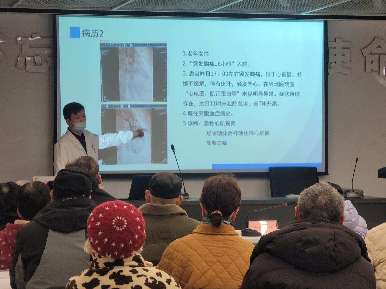 另一边,心胸外科党支部魏振强医生以《肺结节≠肺癌!科学随访让您安心生活》破解“肺部小痘痘”的迷思。他引用“5毫米下常放心,年度复查要记清”的顺口溜,结合真实病例,强调科学随访的重要性。李大姐手握自己的检查报告,听完专家解读后如释重负:“原来我的磨玻璃结节只需定期观察,这下终于能睡个踏实觉了!”