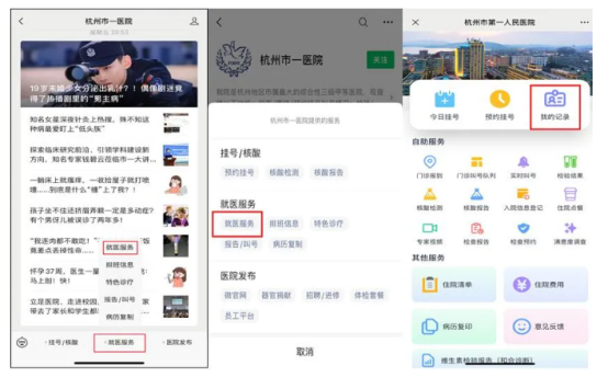 1、微信搜索“成人抖音 一医院”,点击“就医服务”中的“就医服务”,如果初次登录,先点击“我的记录”进行账号绑定。