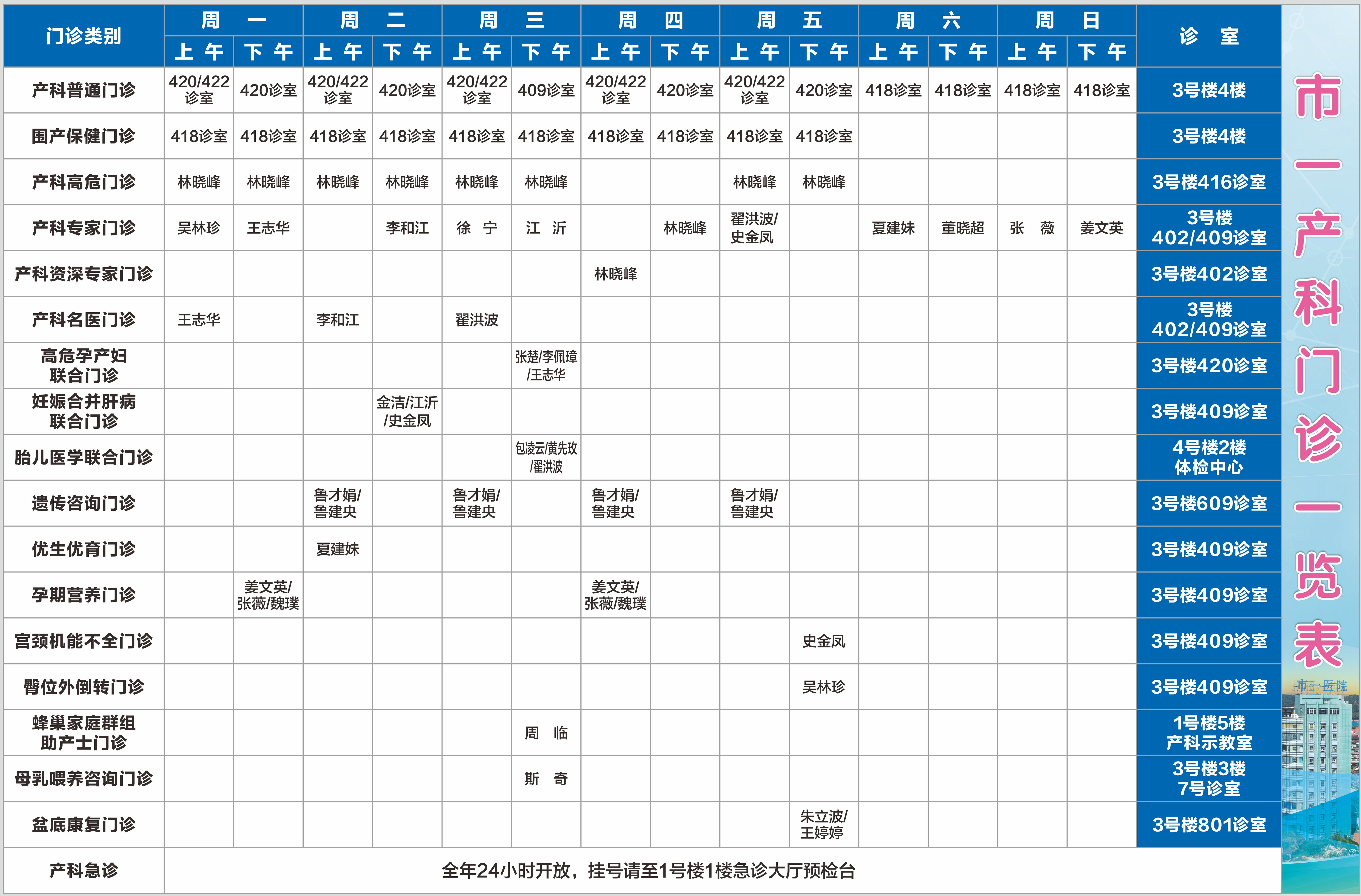 市一产科门诊一览表(2020年6月更新版)
