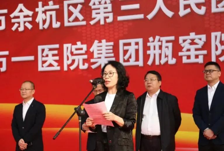 余杭区卫健局党委书记、局长陆永林在讲话中表示,作为区重点民生工程,市一医院瓶窑院区(余杭三院)搬迁并正式启用,离不开社会各界的共同努力。区卫健局将继续加大对余杭三院的扶持力度,也希望余杭三院充分利用新院区的硬件优势,不断提升医疗技术和管理能力,打造西部山区百姓可信赖的医院,不辜负西部山区百姓多年的期盼。