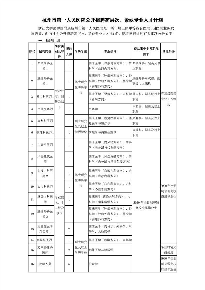 浙大医学院附属成人抖音 2020年上半年高层次、紧缺专业招聘预报名通知