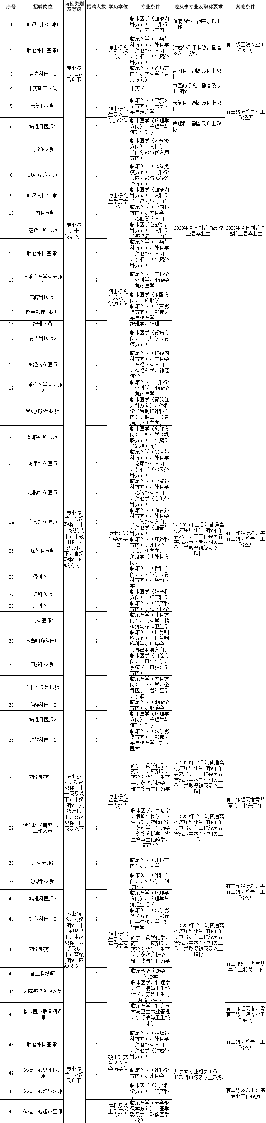 2、紧缺岗位(包括:超声科医生岗位、急诊科医生(含急救医生)岗位、重症医学科医生岗位、病理科医生(含技术)岗位、儿科医生岗位、麻醉科医生岗位、妇产科医生岗位、放射科医生岗位、心电(脑电、肌电)图医生岗位、全科医生岗位),具有中级职称者,年龄在40周岁以下(1979年7月1日以后出生)。