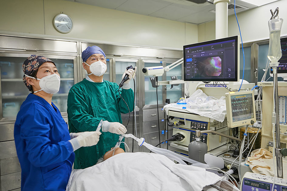 目前我科是浙江省呼吸内镜介入联盟副主席单位、国内首批ROSE培训基地。科室在国内率先引进电磁导航支气管镜、超声支气管镜、内科胸腔镜、氩气刀等先进的介入诊疗设备。目前常规开展无痛支气管镜检查,对于良恶性气道狭窄开展了经支气管镜氩气刀、电切、冻融、冻切、支架置入等治疗措施;利用超声支气管镜、虚拟导航支气管镜、电磁导航支气管镜及现场快速细胞学诊断技术(ROSE)等先进技术,可实现肺癌的早期诊断及精准分期。同时对于周围型肺癌开展了磁导航精准定位下的微波治疗等。