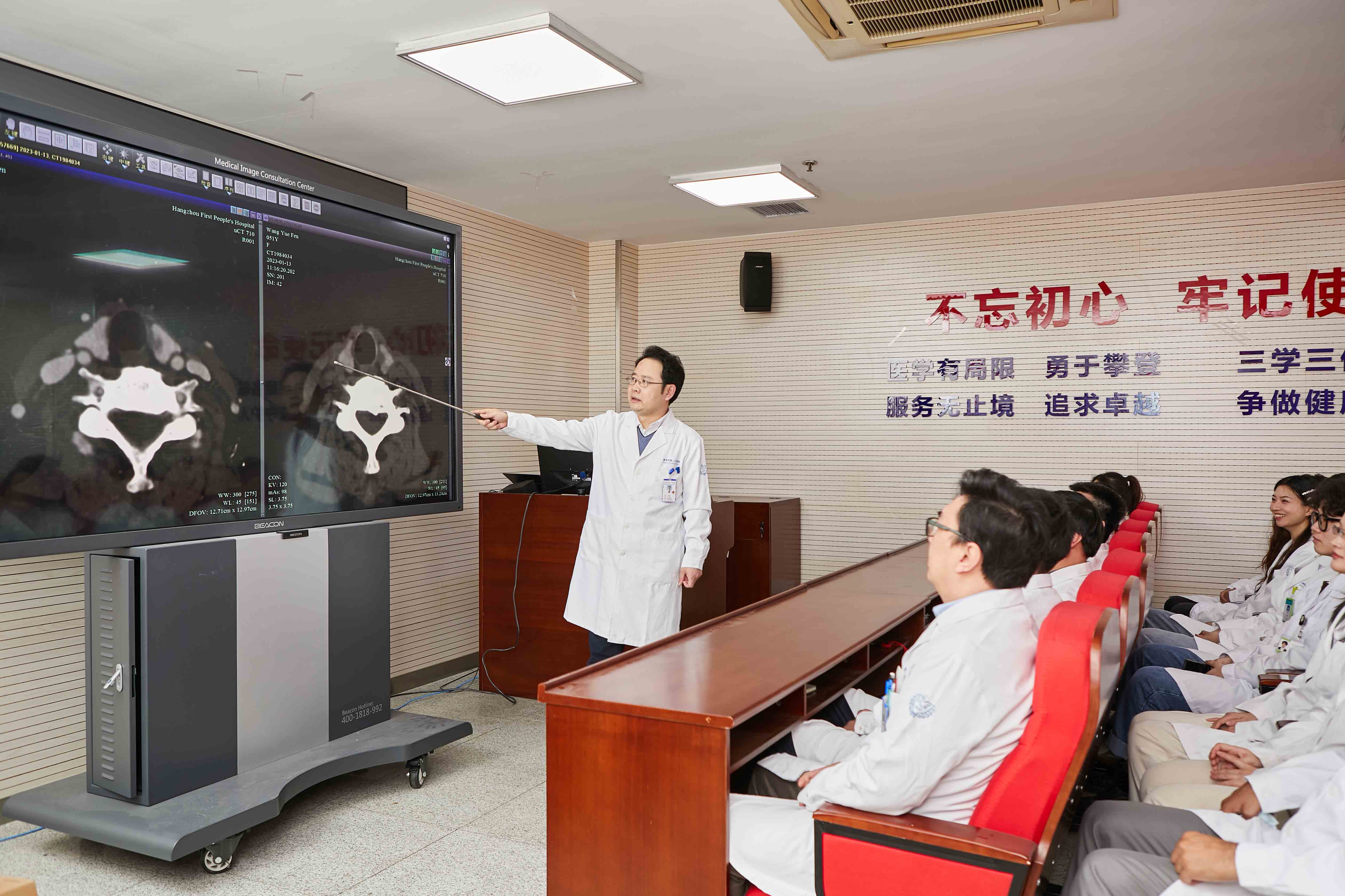 放射科成立于1951年,是我市及院内最早成立的科室之一,也是成人抖音 规模较大的放射学医疗、教学和科研中心,包括湖滨院区和城北院区。 放射科占地面积2600平方米,拥有常规数字化X线摄影机(DR) 4台,数字胃肠机1台,数字乳腺三维断层摄影钼靶机1台,三维数字化口腔全景机1台,双能X线骨密度仪1台,计算机断层摄影(CT)设备5台(其中双源128 CT一台),磁共振成像(MRI)设备3台(3.0T一台,1.5T两台),放射介入中心拥有数字减影血管造影机(DSA) 3台。 放射科现有人员88人,其中医师42人,技师33人,工程师2人,护士6人,登记人员4人。正高5人,副高12人,博士及硕士学历34人,浙江大学博士生导师1人,硕士生导师2人,浙江中医药大学硕士生导师2人。主持国自然、省部级及厅局级课题二十余项,发表SCI及核心期刊百余篇。对于常见病、多发病及疑难病的影像诊断处于省内先进水平。放射科作为国家级住院医师规范化培训联合体主基地,对于学员的分层、同质化教学及科研引导具有带头示范的作用。